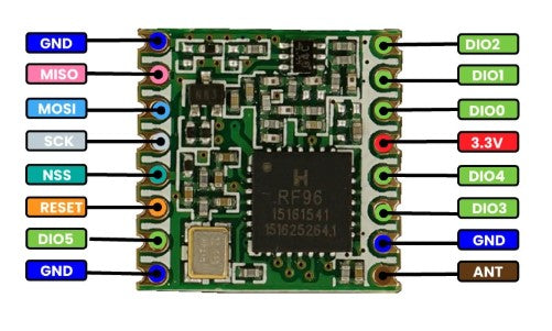 ESPECIFICACIONES Y CARACTERÍSTICAS | Frecuencia de Trabajo: 868/915 MHz. | Modo de Modulación: FSK/GFSK/GMSK/MSK/OOK. | Potencia Máxima de Salida: + 13 dBm. | Sensibilidad de Recepción: 148 dBm. | Interfaz de Datos: Interfaz SPI. | Voltaje: 3.3 VDC. | Temperatura de Operación: 20 ~ 70 C. | Capacidad Potencia: +5 A +20 dBm hasta 100 mW. | Gama de aprox.: 2 kilómetros, dependiendo de obstrucciones. | Módulo de Radio: De 869/915 MHz. | Dimensiones: 16 mm x 16 mm x 3 mm. | Peso: 1 g.